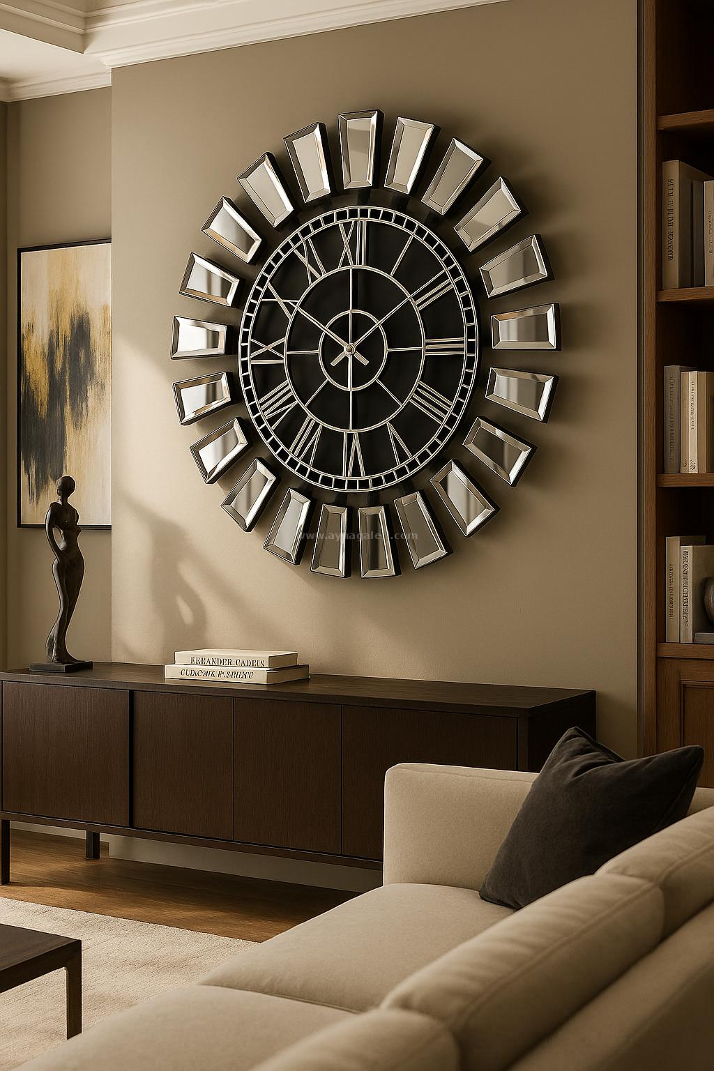 • Tasarım: Ayna yüzeyli, dekoratif büyük boy duvar saati