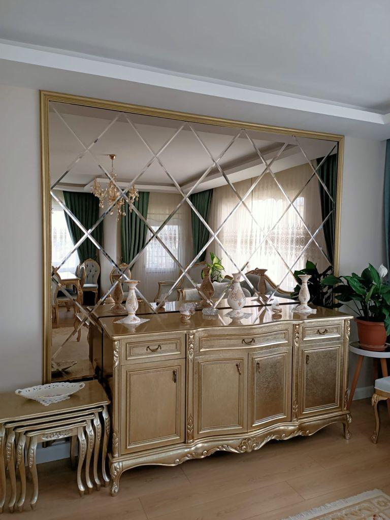 Gold baklava aynamızın montajı Suadiye’de yapılmıştır. Özel ayna baklava ölçüsü alınarak imalat gerçekleştirilmiştir. Ayna baklava üretimi özel AutoCAD çizimi ile yapılmıştır.