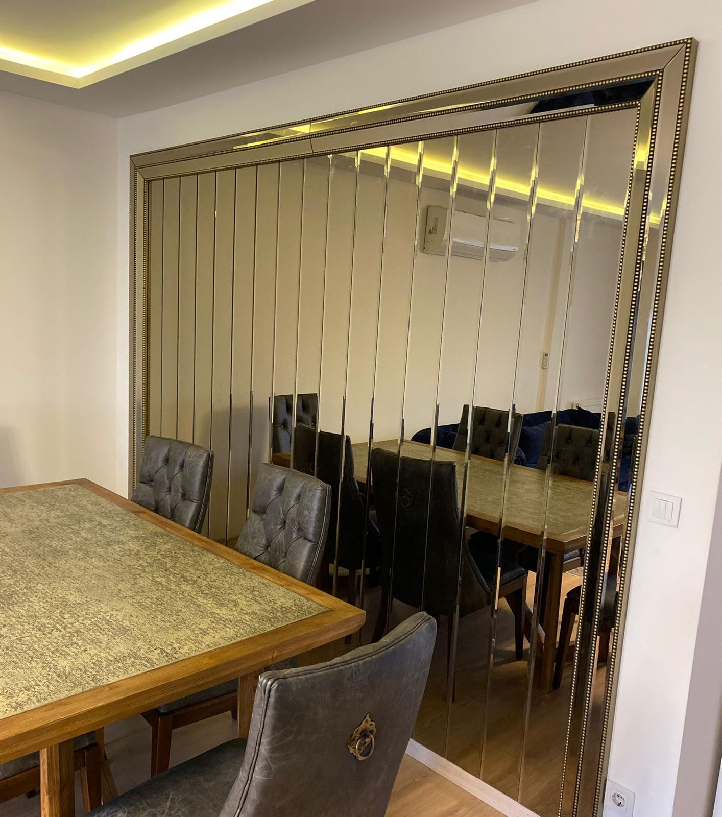 Duvar kaplama aynamız Şişecam ürünüdür ve Ayna Galeri garantilidir. Aynaların tamamı 12 milim bizotelidir.
